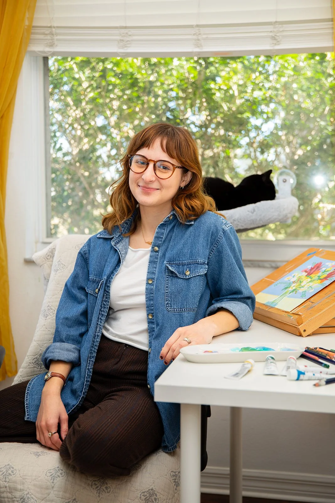The outcome is textural, energetic, and undeniably human. Melanie’s main goal when creating is to capture the connection between people, animals, and nature. She graduated from the Savannah College of Art and Design in 2023, and has since had a professional creative career, working with publishers, gift companies, commercial clients, museums, and more!